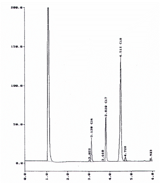 CHÚ THÍCH 2 HìnhE.1 và E.2 minh họa sắc ký đồ điển hình của metyl este của dầu ôliu và triheptadecanoin sử dụng cột 1 và cột 2 tương ứng.