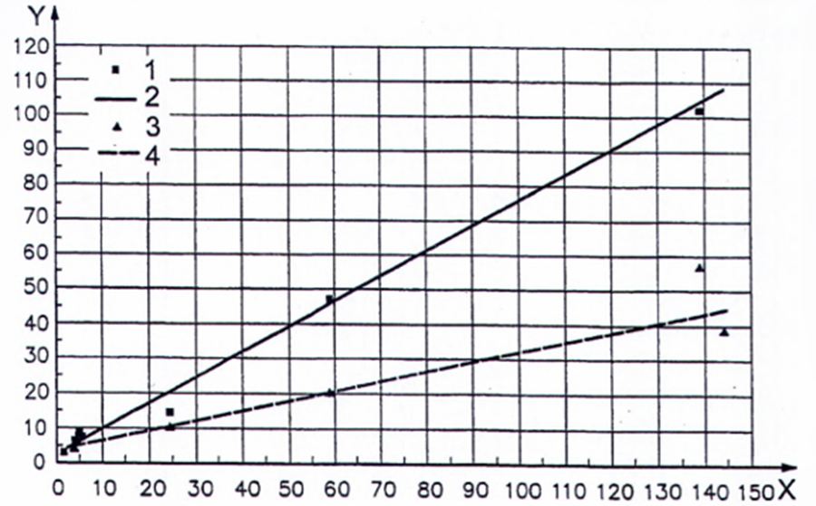 Y Độ tăng nhiệt độ ΔT, (°C); X Giá trị trung bình thống kê m;