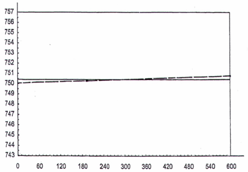 Độ lệch (hồi quy tuyến tính) của nhiệt độ thấp hơn 2 °C trong khoảng 35 min và 45 min (chu kỳ 10 min). Vì vậy các tiêu chí ổn định của nhiệt độ cuối cùng đạt được tại 45 min, như vậy phép thử kết thúc tại 45 min.