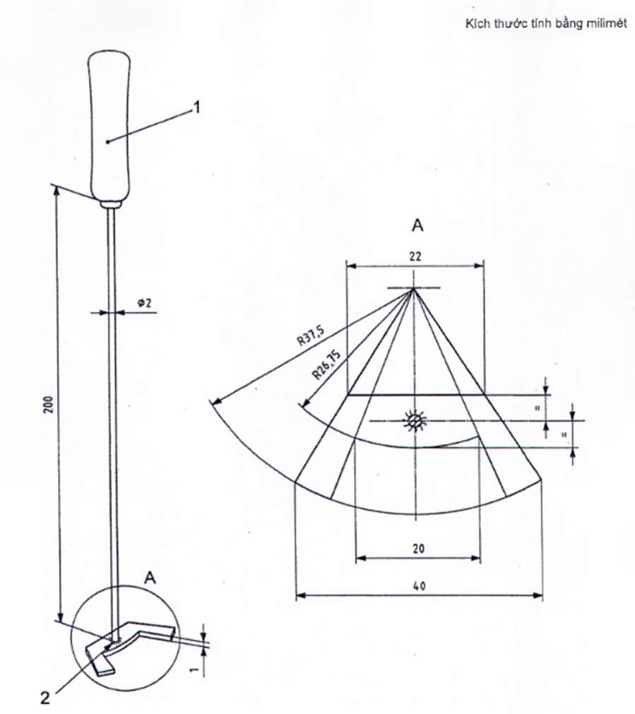 CHÚ THÍCH 1: Tất cả các kích thước được thể hiện trong các thiết bị thử nghiệm là những giá trị danh nghĩa, trừ khi có quy định về giá trị dung sai.