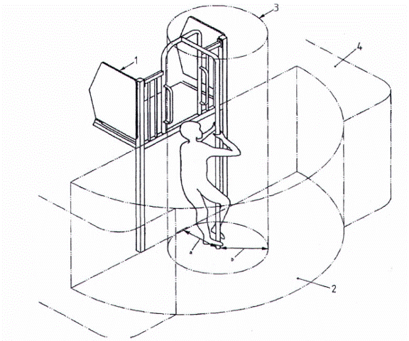 Không gian bên trong, bên trên hoặc xung quanh thiết bị mà có thể bị tác động bởi người dùng do các chuyển động cưỡng bức gây ra bởi thiết bị.