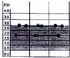 c) Độ dày của bề mặt giảm chấn trong mỗi không gian rơi phải được xác định và ghi lại.