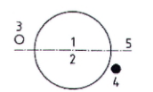 | Kiểu 2: Đĩa quay khổng lồ | 3 và 4: hai vị trí thử ở mỗi bên của một trục được xác định bên ngoài đồ chơi cưỡi, quay tròn Một vị trí thử trong mỗi vùng thử 3 và 4, chọn trên độ dày lớp vật liệu bề mặt nhỏ nhất để đo 1: trên cao 2: dưới thấp 5: trục được xác định |