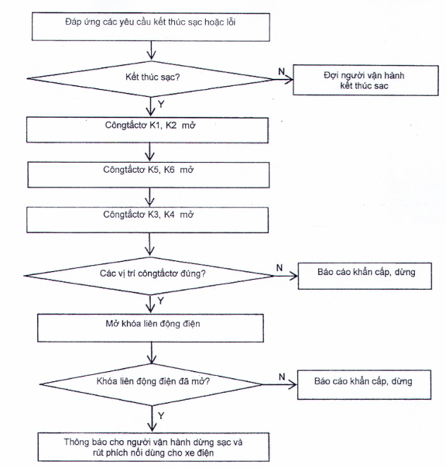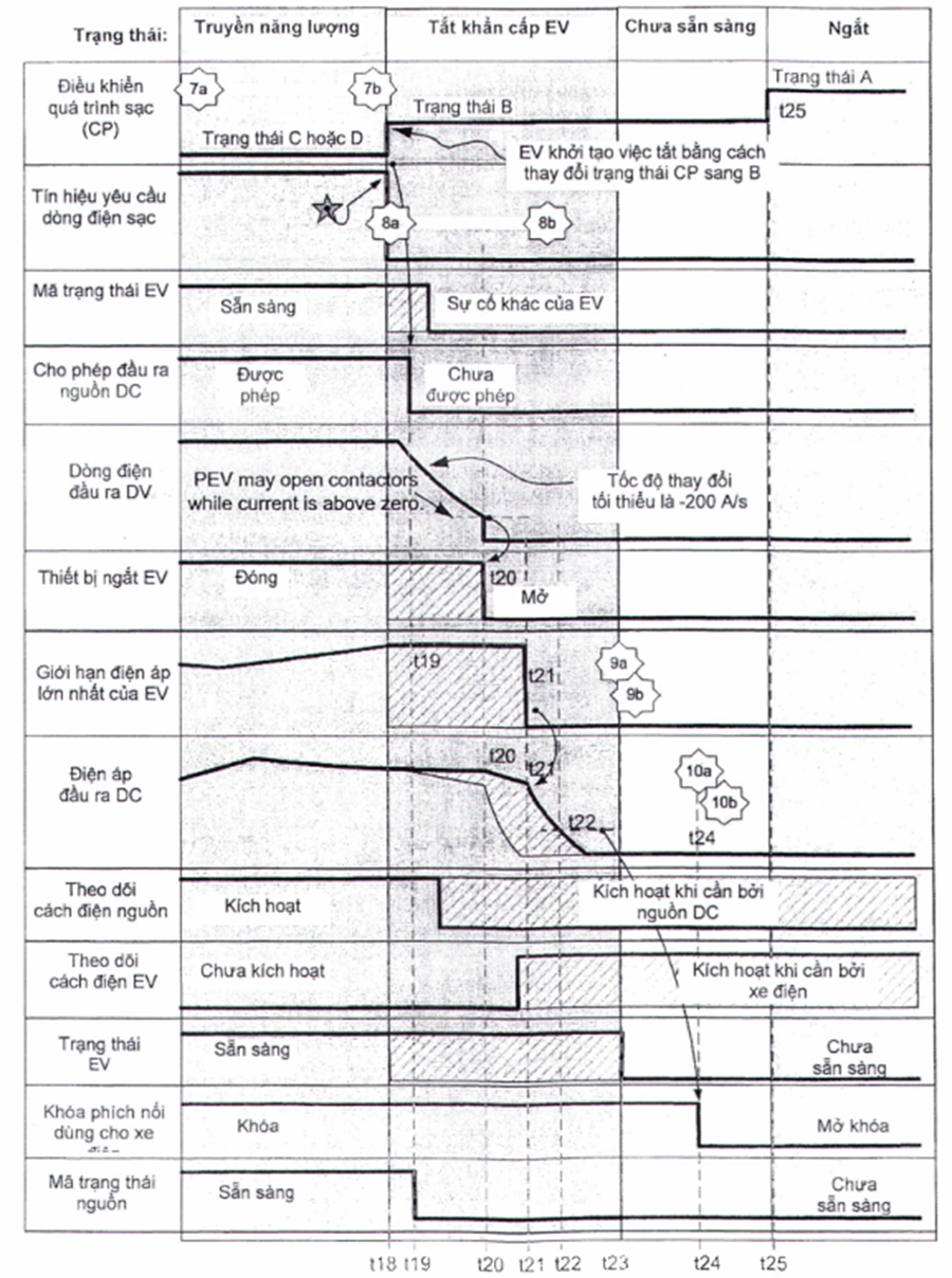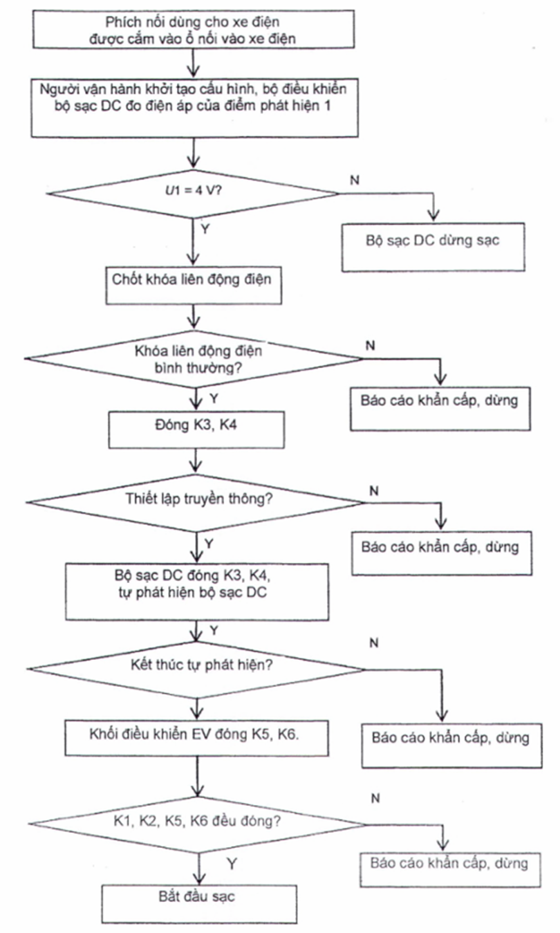 Chu kỳ cấp nguồn chỉ được phép một khi trạm sạc điện một chiều kiểm tra phích nối cấu hình CC đã chốt và chức năng của cơ cấu đóng cắt vị trí chốt (S3) trước khi nối phích nối dùng cho xe điện với ổ nối vào xe điện.