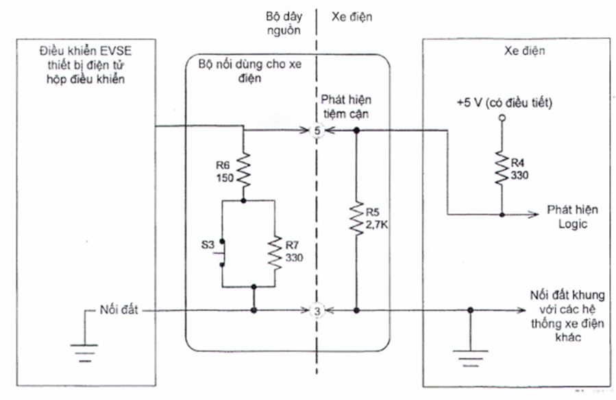 CHÚ THÍCH 3: Sơ đồ thể hiện mô tả về chức năng của giao diện. Sự phân công các tiếp điểm của bộ nối dùng cho xe điện được thực hiện trong IEC 62196-3.