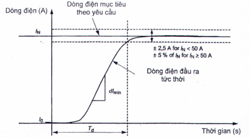- ± 3 % đầu ra dòng điện lớn nhất của bộ sạc một chiều khi giá trị dòng điện yêu cầu lớn hơn 50 A.