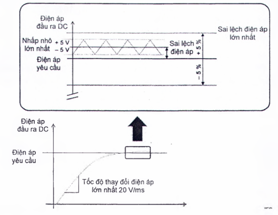 Tốc độ giảm lớn nhất của điện áp đầu ra trong trường hợp sa thải phụ tải không được vượt quá 250 V/ms.
