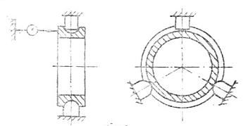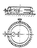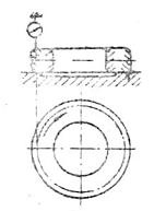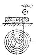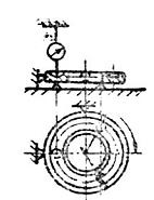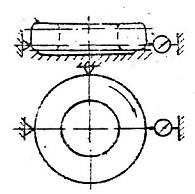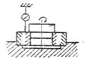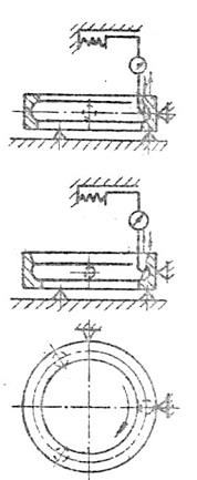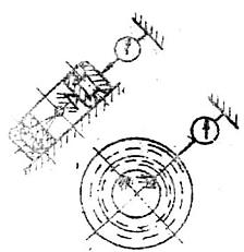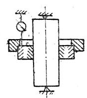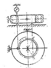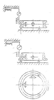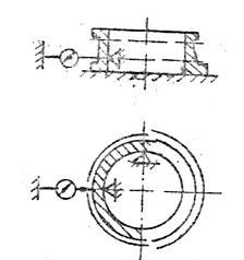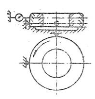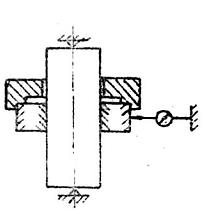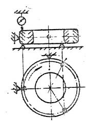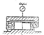 3.2.6. Độ đảo dọc trục của vòng ngoài các ổ đã lắp được đo trên các khí cụ theo sơ đồ chỉ dẫn trên hình vẽ 32 và 33. Đầu đo được đặt ở mặt chuẩn của vòng ngoài. Phải quay vòng ổ quanh đường trục không ít hơn ba vòng. Sai lệch lớn nhất sau chu kỳ đo là độ đảo dọc trục.