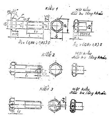 1. Kết cấu và kích thước của bulông phải theo những chỉ dẫn ở hình vẽ và bảng 1, 2.