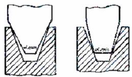 1. Góc rãnh α được kiểm tra bằng ka líp góc giới hạn theo Hình 1 và Hình 2.