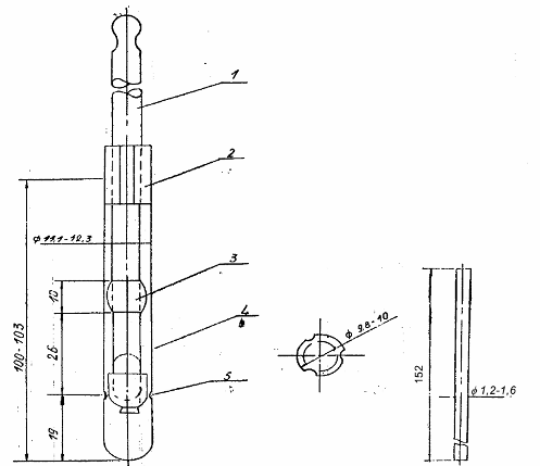 Giá đỡ vòng để dỡ cốc dầu và các cặp giữ nhiệt kế. Hai nút lic như ở Hình 2 và một que bằng kim loại nhẵn, đường kính của que 1,2 mm đến 1,6 mm, dài 152 mm (hình 3);
