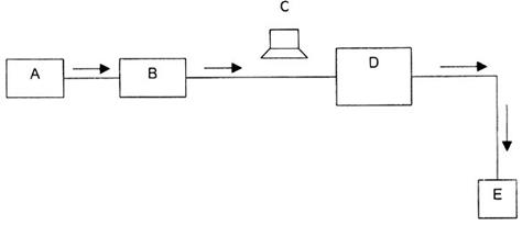 Thiết bị xác định độ nhám là máy đo Bendtsen gồm bộ phận nén khí (A), bình ổn định áp suất (B) để cung cấp khí, lưu lượng kế (D), bộ điều chỉnh áp suất (C) và đầu đo (E), (xem hình 1).