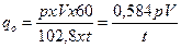 qo là lưu lượng khí, tính bằng mililit trên phút hiệu chỉnh theo áp suất 102,8 kPa (áp suất khí quyển chuẩn 101,3 kPa) cộng với áp suất thao tác chuẩn (1,47 kPa tại 23oC);