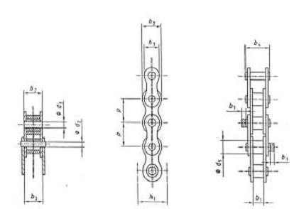 | Kí hiệu xích | Kiểu xích | Bước p | Đường kính con lăn d1 max | Chiều rộng hai má trong b1 min | Đường kính chốt đỡ d2 max | Đường kính lỗ bạc lót D3 min | Chiều sâu đường xích h1 min | Chiều sâu má trong h2 max | Chiều sâu má ngoài h3 max | Khe hở giữa mắt trong và mắt ngoài b3– b2 max | Chiều rộng chốt dỡ a b4 max | Chiều rộng bổ sung để kẹp nối b b7 max | Lực đo | Lực ép min | Độ bền kéo min |