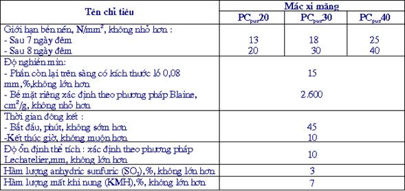 3.4. Ximăng poóc lăng puzôlan phải đảm bảo các yêu cầu ghi trong bảng 1.