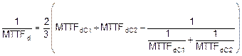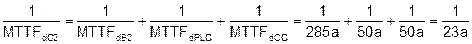 Bởi vì cả hai kênh có MTTFd khác nhau, một công thức đối xứng, được đưa ra trong công thức (F.4), có thể được sử dụng để tính toán giá trị thay thế cho một MTTFd một kênh của một hệ thống hai kênh đối xứng: