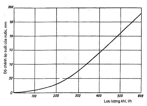 Hình 10 - Biểu đồ hiệu chuẩn của ống mao dẫn (d = 2,0 mm, I = 70 mm) của dụng cụ đo lưu lượng dùng để khống chế ở trong lò theo phương pháp 2