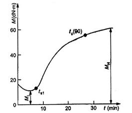 4.2. Độ cứng vững của mẫu thử cao su tăng do quá trình lưu hóa. Đường cong được hoàn thành khi mômen xoắn ghi lại tăng đến giá trị cân bằng hoặc đến giá trị cực đại (xem Hình 1). Nếu mômen xoắn tiếp tục tăng, sự lưu hóa được coi như là hoàn thành sau thời gian nhất định. Thời gian cần thiết để nhận được đường cong lưu hóa là hàm số của nhiệt độ thử nghiệm và các đặc tính của hỗn hợp cao su.