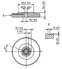 | 5 | Đường kính Chiều dài phần vòng quanh của trục đĩa Chiều dài phần vuông của trục đĩa | 9,51 20,0 35,0 | ± 0,01 ± 0,5 ± 0,5 |
