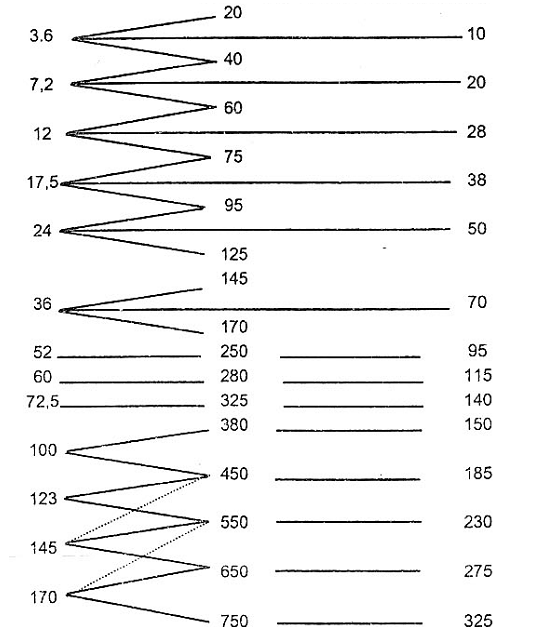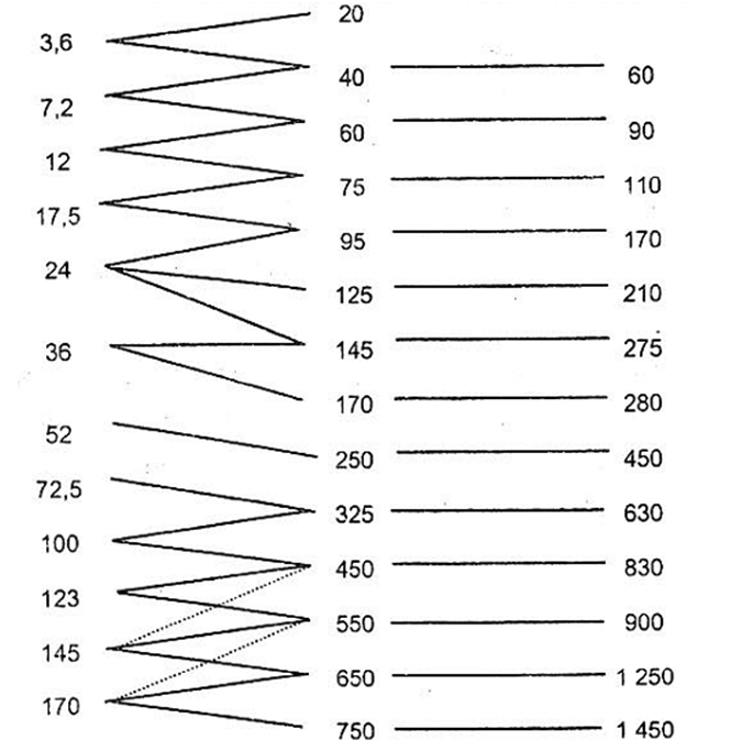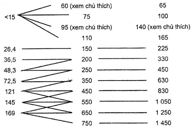 Giá trị tiêu chuẩn hóa của Um được liệt kê từ bảng 2 đến bảng 4. Giá trị sử dụng cho cuộn dây máy biến áp là giá trị bằng hoặc lớn hơn gần nhất giá trị danh định của cuộn dây.
