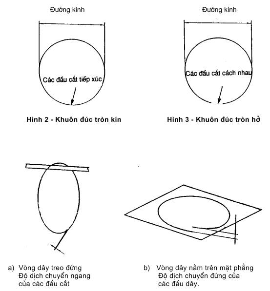 4.3.2.4 Để thử khuôn đúc tròn và khuôn đúc xoắn ốc , phải cắt một đoạn dây đủ dài từ cuộn dây hoặc lõi dây để tạo thành đủ một vòng . Cần đảm bảo dây không bị uốn và bị hỏng (xem hình 1).