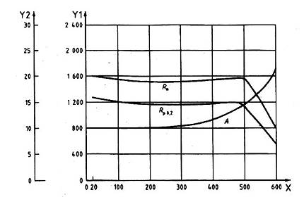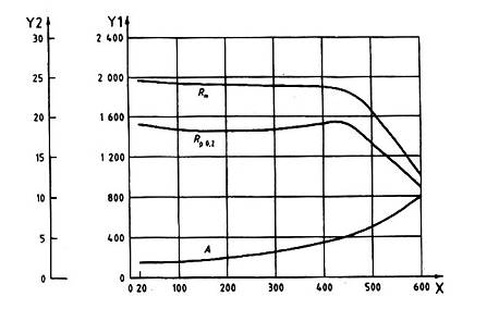 CHÚ THÍCH 2: Tại phạm vi kéo thấp hơn, sự tăng của giới hạn bền kéo thấp hơn nhiều độ tăng của giới hạn chảy 0,2 %. Do vậy, việc tăng đặc tính đàn hồi của vật liệu hoặc các chi tiết đã được nhiệt luyện cao hơn nhiều các giá trị kéo chỉ thị
