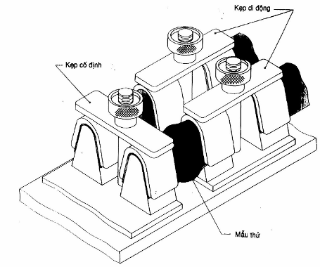 Các đỉnh của mỗi kẹp hình chữ V được làm tròn với bán kính 6,4 mm ± 0,5 mm, một trong những kẹp của mỗi cặp có khả năng chuyển động tịnh tiến qua lại với tần số 5 Hz ± 0,5 Hz trong điều kiện bình thường và với tần số 1,5 Hz ± 0,2 Hz khi thử ở nhiệt độ thấp – 5 oC. Các kẹp cách 28,5 mm ± 2,5 mm về một bên ở vị trí mở và cách 9,5 mm ± 1,0 mm về một bên ở vị trí đóng. Quãng đường chuyển động của kẹp di động là 19 mm ± 1,5 mm. Nếu như thiết bị trên phải sửa để thích hợp với 1 mẫu thử với chiều dài lớn hơn là 70 mm ± 1 mm, thì các kích thước lựa chọn có thể như sau: