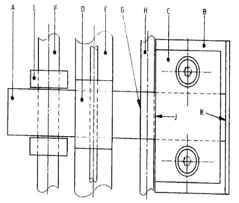 Đầu của con lăn E, F và trục gá H ở trên cùng mặt phẳng ngang và con lăn D nằm thẳng ngang trên con lăn E. Ngoài ra, kích thước và vị trí của các con lăn D, E và F không quy định. Đường kính thích hợp cho các con lăn D và E là 25 mm và cho F là 10 mm, hoặc 15 mm.