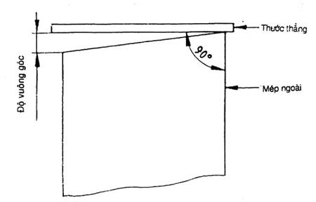 Độ vuông góc là sai lệch lớn nhất của mép cuối so với đường thẳng vuông góc với mép kia và tiếp xúc với một đỉnh, phép đo được tiến hành như trên hình 3. Nó cũng có thể được đo bằng nửa sai lệch giữa các đường chéo của tấm thép.