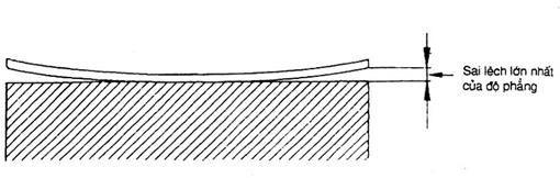 | 1) Độ sai lệch lớn nhất so với mặt phẳng nằm ngang. Đối với tấm nằm do bản thân trọng lượng của nó trên một mặt phẳng thì khoảng cách lớn nhất giữa bề mặt thấp nhất của tấm và mặt phẳng nằm ngang là sai lệch lớn nhất của độ phẳng (xem hình 4). | ||