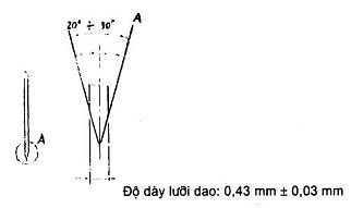 - dao cắt bằng thép có lưỡi vát từ 20 đến 30° và các kích thước khác được qui định ở hình 2;