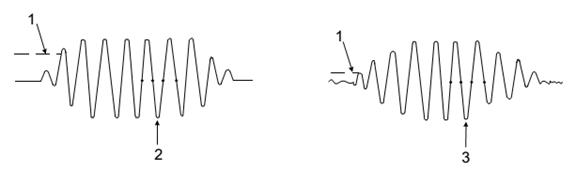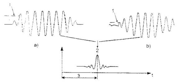 Phương pháp đo lưu lượng dòng chảy, trong đó thời gian đi qua của các xung siêu âm được xác định dựa trên sự thay đổi trạng thái (lật trạng thái) của tín hiệu thu nhận được tại mức biên độ cho trước (hình 1).