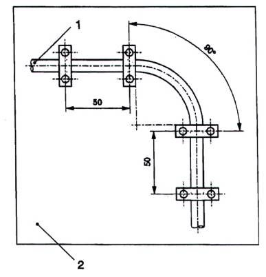 10.4.101.2 Mẫu có chiều dài bằng 30 lần đường kính danh nghĩa được uốn sao cho khi thả ra thì tạo thành góc (90 ± 5)° và bán kính trong của phần uốn bằng sáu lần đường kính danh nghĩa.