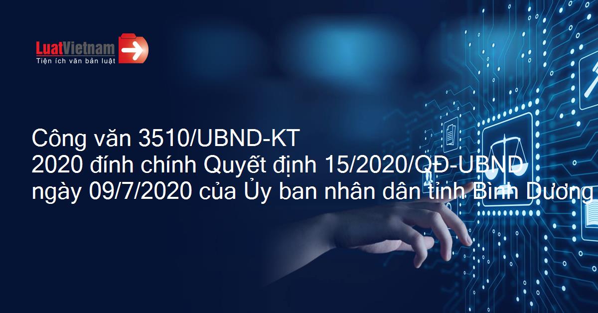 Công văn 3510/UBND-KT 2020 đính chính Quyết định 15/2020/QĐ-UBND ngày 09/7/2020 của Ủy ban nhân dân tỉnh Bình Dương