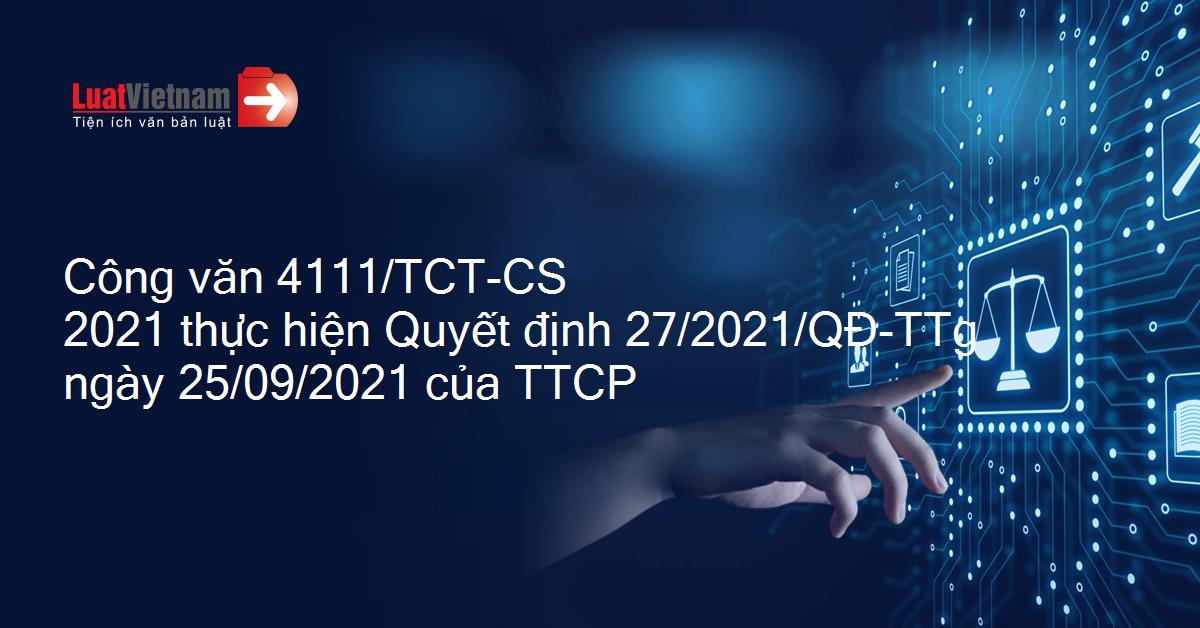 Công văn 4111/TCT-CS 2021 thực hiện Quyết định 27/2021/QĐ-TTg ngày 25/09/2021 của TTCP