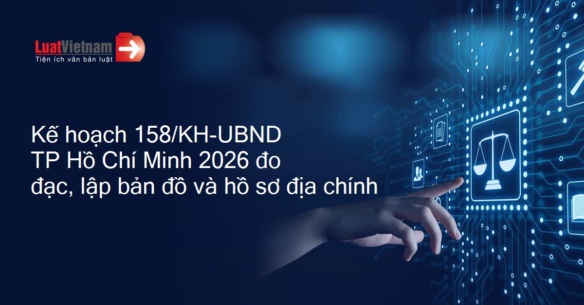 Kế hoạch 158/KH-UBND của Ủy ban nhân dân Thành phố Hồ Chí Minh triển khai cao điểm thực hiện nhiệm vụ đo đạc, lập bản đồ địa chính, lập hồ sơ địa chính và xây dựng cơ sở dữ liệu quốc gia về đất đai năm 2026 trên địa bàn Thành phố Hồ Chí Minh