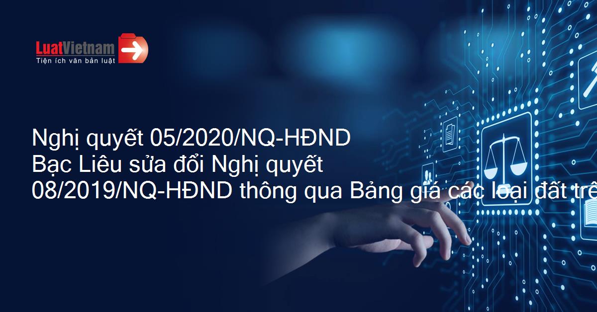 Nghị quyết 05/2020/NQ-HĐND Bạc Liêu sửa đổi Nghị quyết 08/2019/NQ-HĐND thông qua Bảng giá các loại đất trên địa bàn tỉnh