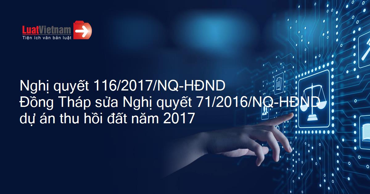 Nghị quyết 116/2017/NQ-HĐND Đồng Tháp sửa Nghị quyết 71/2016/NQ-HĐND dự án thu hồi đất năm 2017