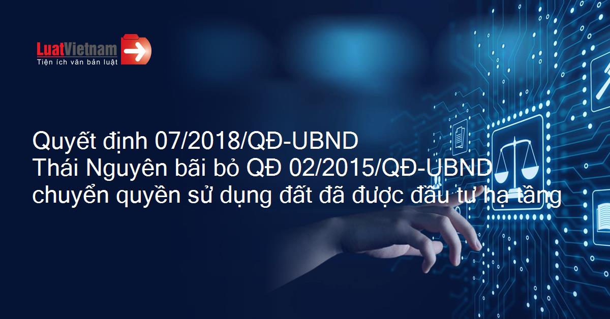 Quyết định 07/2018/QĐ-UBND Thái Nguyên bãi bỏ QĐ 02/2015/QĐ-UBND chuyển quyền sử dụng đất đã được đầu tư hạ tầng
