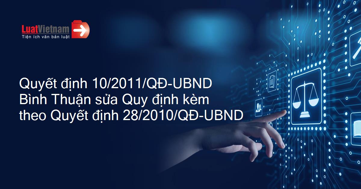 Quyết định 10/2011/QĐ-UBND Bình Thuận sửa Quy định kèm theo Quyết định 28/2010/QĐ-UBND