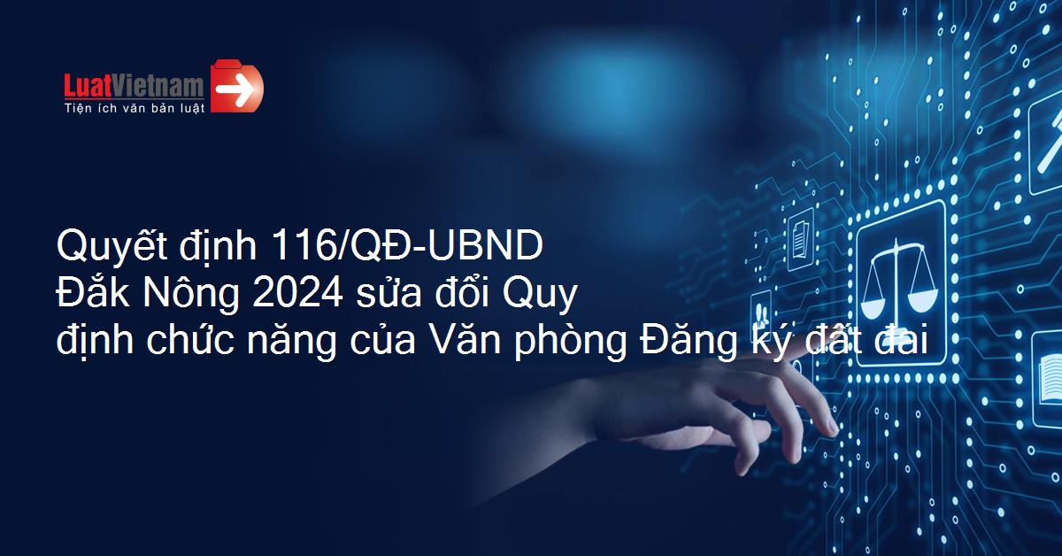 Quyết định 116/QĐ-UBND Đắk Nông 2024 sửa đổi Quy định chức năng của Văn phòng Đăng ký đất đai
