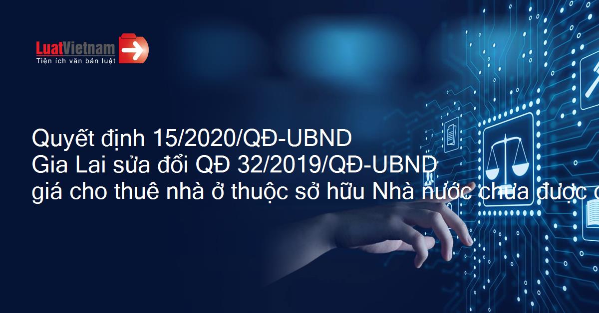 Quyết định 15/2020/QĐ-UBND Gia Lai sửa đổi QĐ 32/2019/QĐ-UBND giá cho thuê nhà ở thuộc sở hữu Nhà nước chưa được cải tạo, xây dựng lại trên địa bàn Thành phố Pleiku, thị xã An Khê, thị xã Ayun Pa