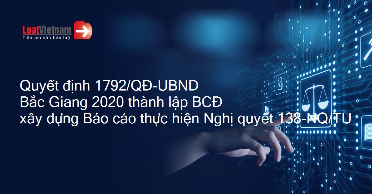 Quyết định 1792/QĐ-UBND Bắc Giang 2020 thành lập BCĐ xây dựng Báo cáo thực hiện Nghị quyết 138-NQ/TU