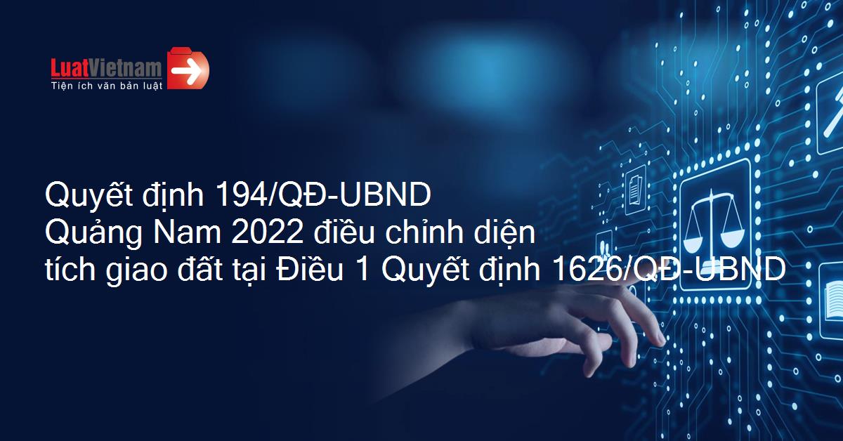 Quyết định 194/QĐ-UBND Quảng Nam 2022 điều chỉnh diện tích giao đất tại Điều 1 Quyết định 1626/QĐ-UBND