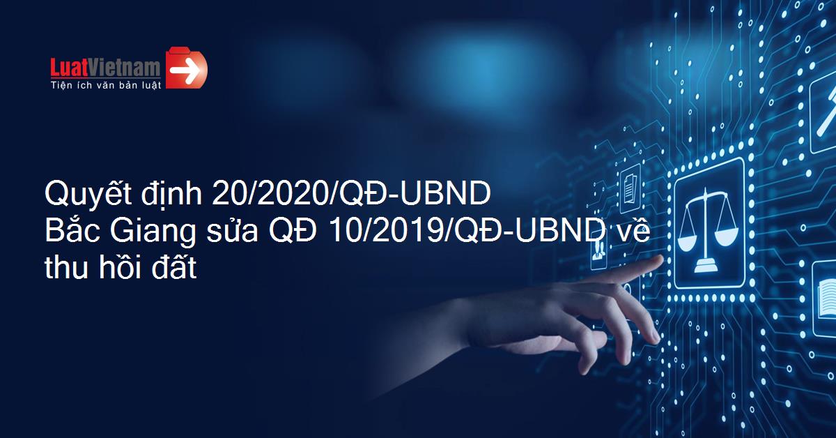 Quyết định 20/2020/QĐ-UBND Bắc Giang sửa QĐ 10/2019/QĐ-UBND về thu hồi đất
