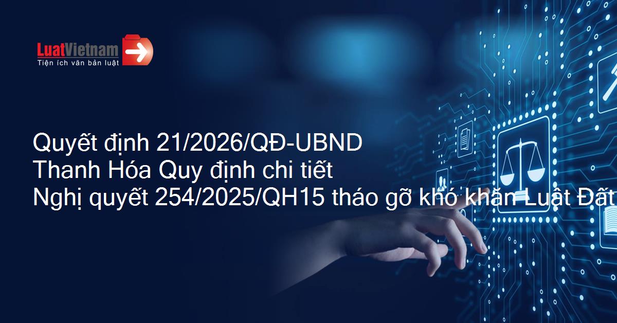 Quyết định 21/2026/QĐ-UBND Thanh Hóa Quy định chi tiết Nghị quyết 254/2025/QH15 tháo gỡ khó khăn Luật Đất đai