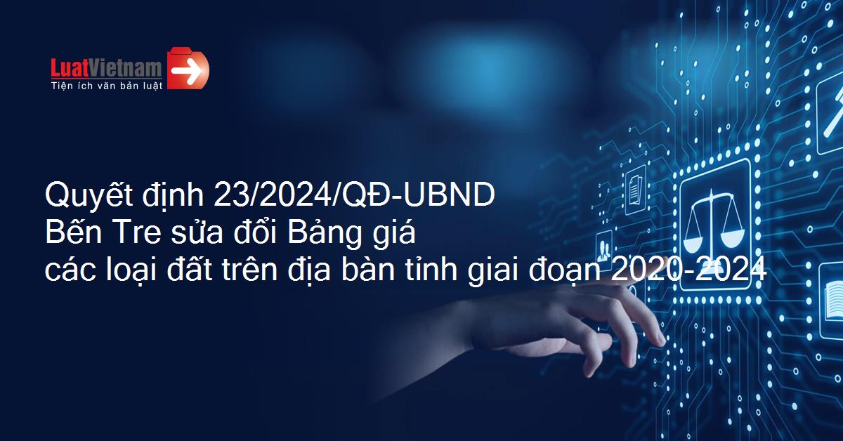 Quyết định 23/2024/QĐ-UBND Bến Tre sửa đổi Bảng giá các loại đất trên địa bàn tỉnh giai đoạn 2020-2024