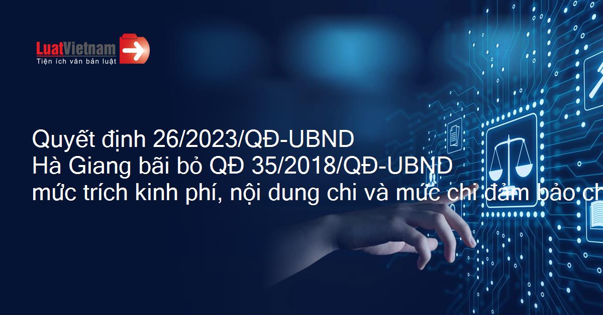 Quyết định 26/2023/QĐ-UBND Hà Giang bãi bỏ QĐ 35/2018/QĐ-UBND mức trích kinh phí, nội dung chi và mức chi đảm bảo cho việc tổ chức thực hiện bồi thường, hỗ trợ, tái định cư