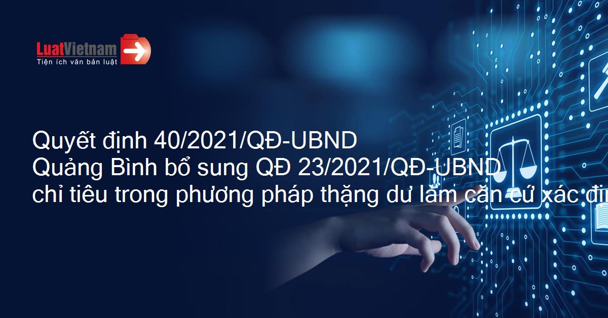 Quyết định 40/2021/QĐ-UBND Quảng Bình bổ sung QĐ 23/2021/QĐ-UBND chỉ tiêu trong phương pháp thặng dư làm căn cứ xác định giá đất