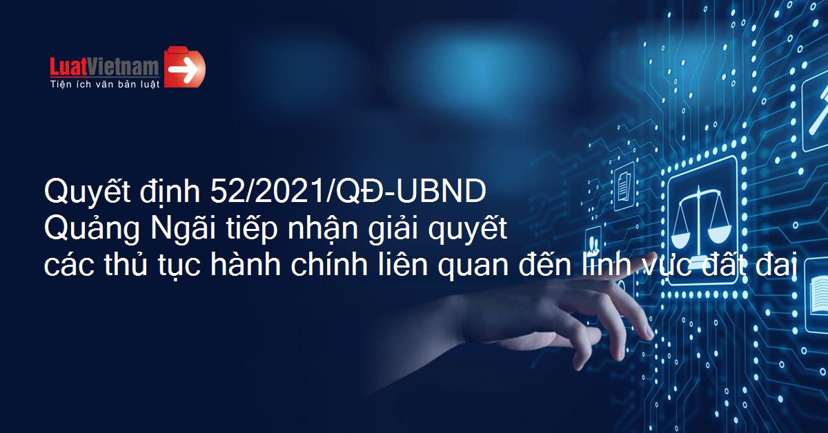 Quyết định 52/2021/QĐ-UBND Quảng Ngãi tiếp nhận giải quyết các thủ tục hành chính liên quan đến lĩnh vực đất đai